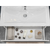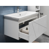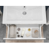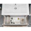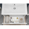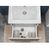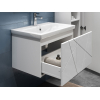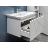 Просторный выдвижной ящик открывается плавно и бесшумно с помощью нажимного механизма. Компактные габариты и продуманная конструкция позволяют оптимально использовать обстановку ванной комнаты, не загромождая пространство на полу.