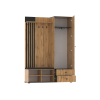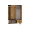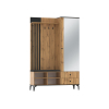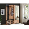 Панель с крючками организует место для повседневных предметов гардероба, сумок и зонтов. За зеркалом расположена секция с поперечной штангой для удобного хранения верхней и сезонной одежды. Реечный декор, текстура дерева и зеркальный фасад придают обстановке динамичность и уют.